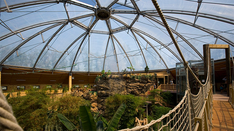 ETFE 箔屋頂?shù)囊粋€副作用是該景點不受天氣影響,這意味著亞洲冒險世界動物園可以全年開放。