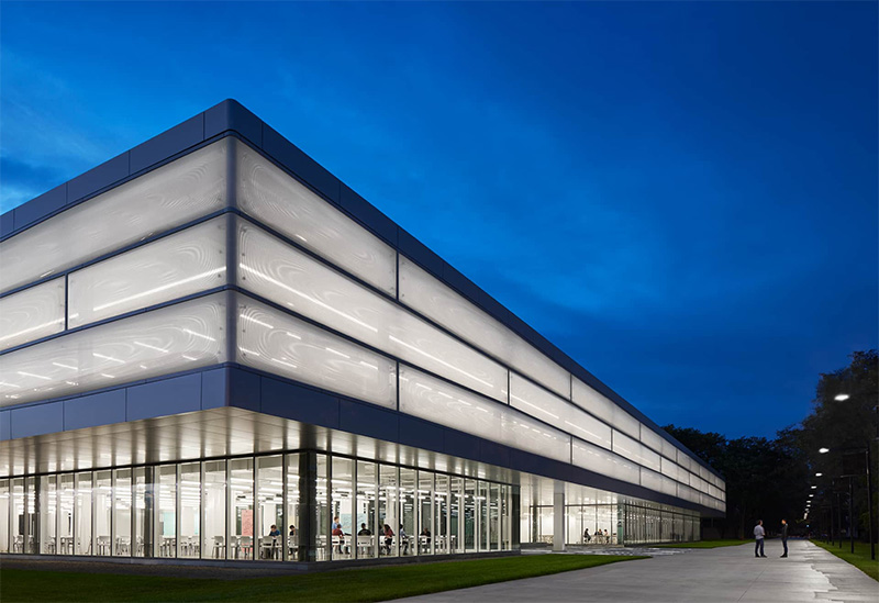 伊利諾伊理工學(xué)院 (Illinois Tech) 的 Ed Kaplan 家庭創(chuàng)新與科技創(chuàng)業(yè)學(xué)院是校園內(nèi)最新、最具創(chuàng)新性的建筑,采用 Vector Foiltec 設(shè)計(jì)的獨(dú)一無二的 Texlon? ETFE 外墻。