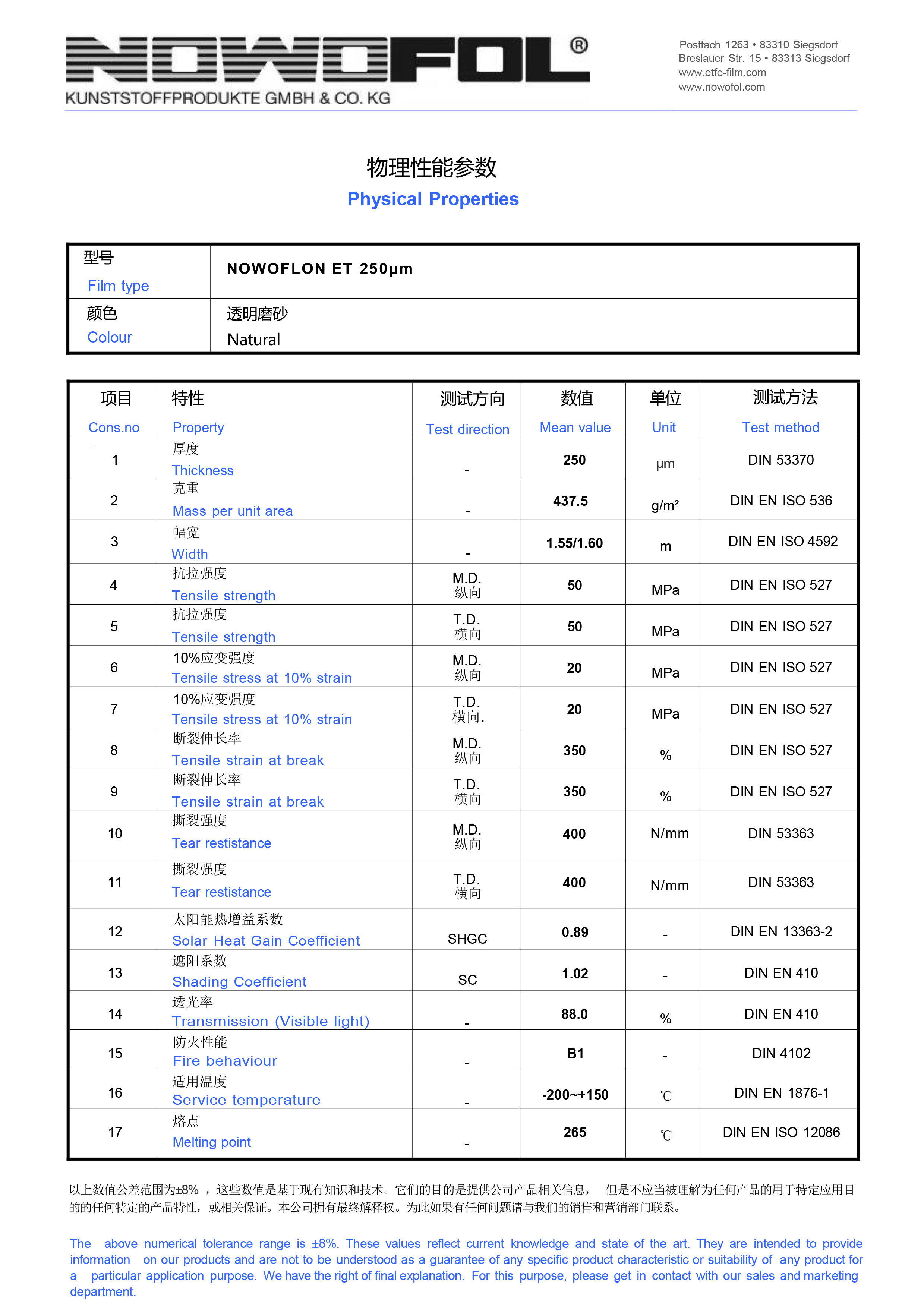 德國NOWOFOL ETFE膜材 - NOWOFLON ET 250μm 透明磨砂