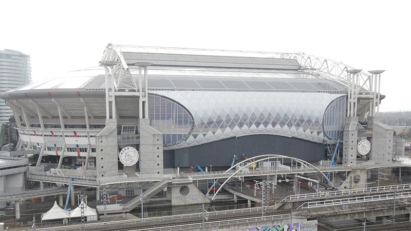 約翰克魯伊夫競(jìng)技場(chǎng)(前阿姆斯特丹競(jìng)技場(chǎng))一直在翻新其體育場(chǎng)。新的引人注目的外墻由 Vector Foiltec 的ETFE 制成。鋼結(jié)構(gòu)支撐著由兩層 ETFE 組成的 2,500 平方米ETFE 箔墊外墻。 Vector Foiltec 很榮幸成為團(tuán)隊(duì)的一員。