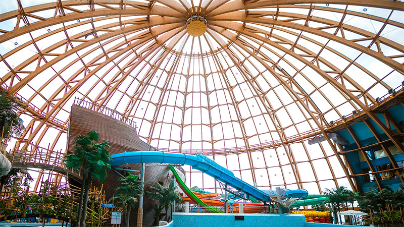 Piterland 是位于俄羅斯圣彼得堡的體育和娛樂中心。它由令人驚嘆的ETFE 圓頂覆蓋,采用木結(jié)構(gòu),營造出溫馨宜人的氛圍。巨大屋頂下的水上樂園主要元素是《加勒比海盜》中的“黑珍珠”。據(jù)傳說,它墜毀并最終降落在芬蘭灣沿岸。通過 ETFE 屋頂元件射入的大量自然光使所有景點(diǎn)都沐浴在適量的光線中。