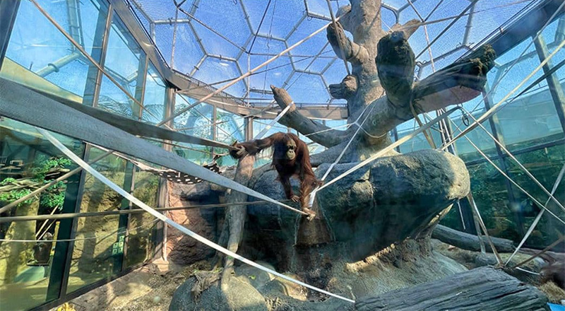 克利夫蘭 Metroparks 動物園的雨林展覽最近進行了翻新,其中包括標志性的透明測地圓頂。這個透明的圓頂由 840 平方米的ETFE 組成,位于猩猩區(qū)的上方。